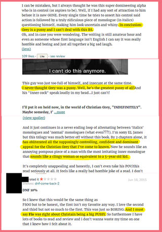 Back when Pope Alexander was doing the Grey recaps, I noticed a couple trends on the GoodReads page from fans of the original series. First that they didn’t like the new Grey, and second that they were incredibly sexist. Anyway, I went back and took some screenshots. These are all from different reviewers-