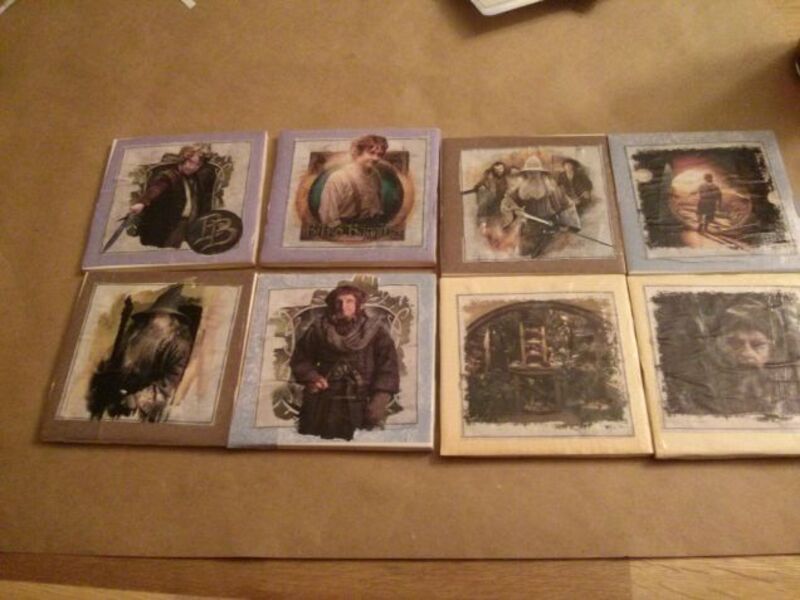 Tomorrow, my friends and I are having an "Our Christmases sucked so let's have a do over" party. We're doing a crafty geeky white elephant exchange. This is what I made for it. Hobbit coasters