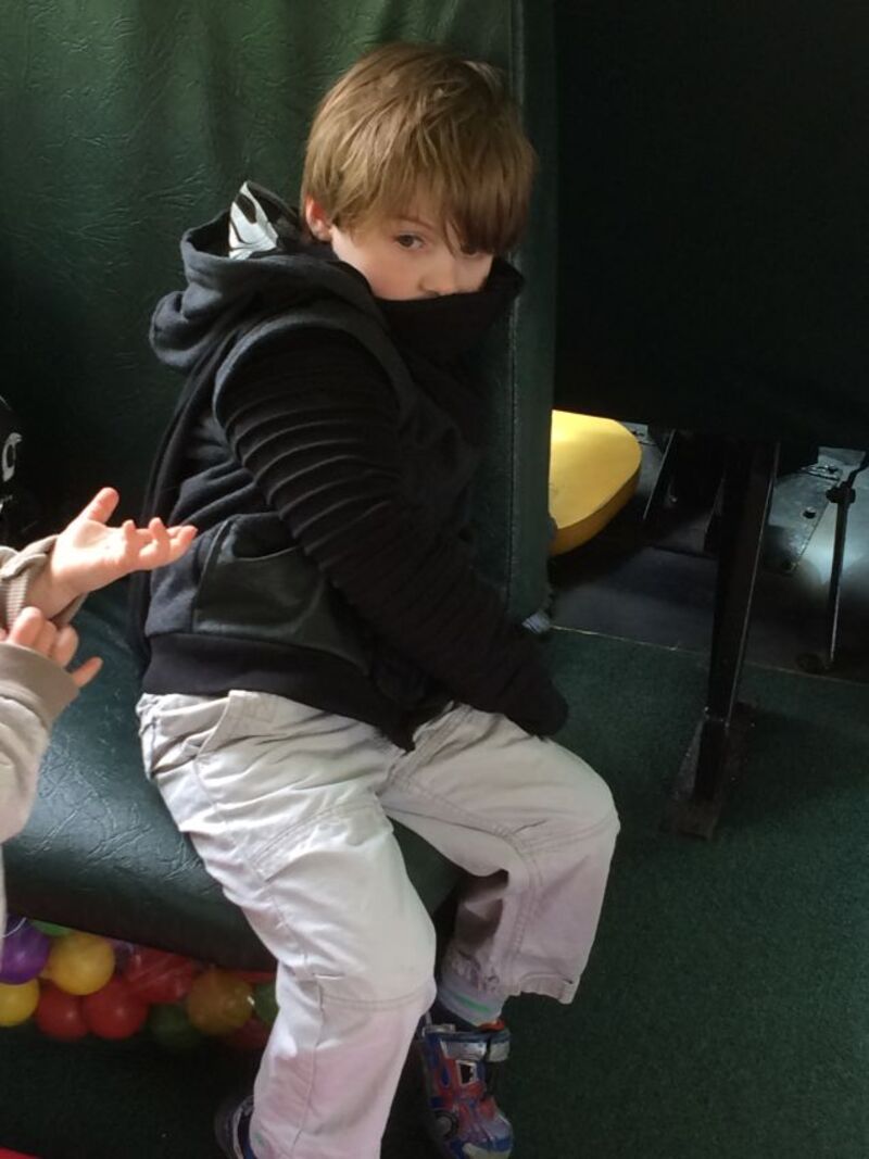 Le Petit Comte at a party. This is how he does the first half an hour of most parties. This was on a specially hired “Fun Bus.” He didn’t think it was so fun... At least not until it was pulling out our neighbors’ driveway, at which point he sobbed because “I feel sad and regret because I want to play on it and now it’s TOO LATE!” My poor sensitive little weirdo.