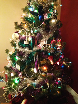 I put up a tree this year. You'd love it. It's the tackiest tree on the block. It's wearing purple garland, an Elvis ornament, a disco ball, and a giant, glitter-covered can of Diet Coke. And way too many light strands. It totally made dad giggle.